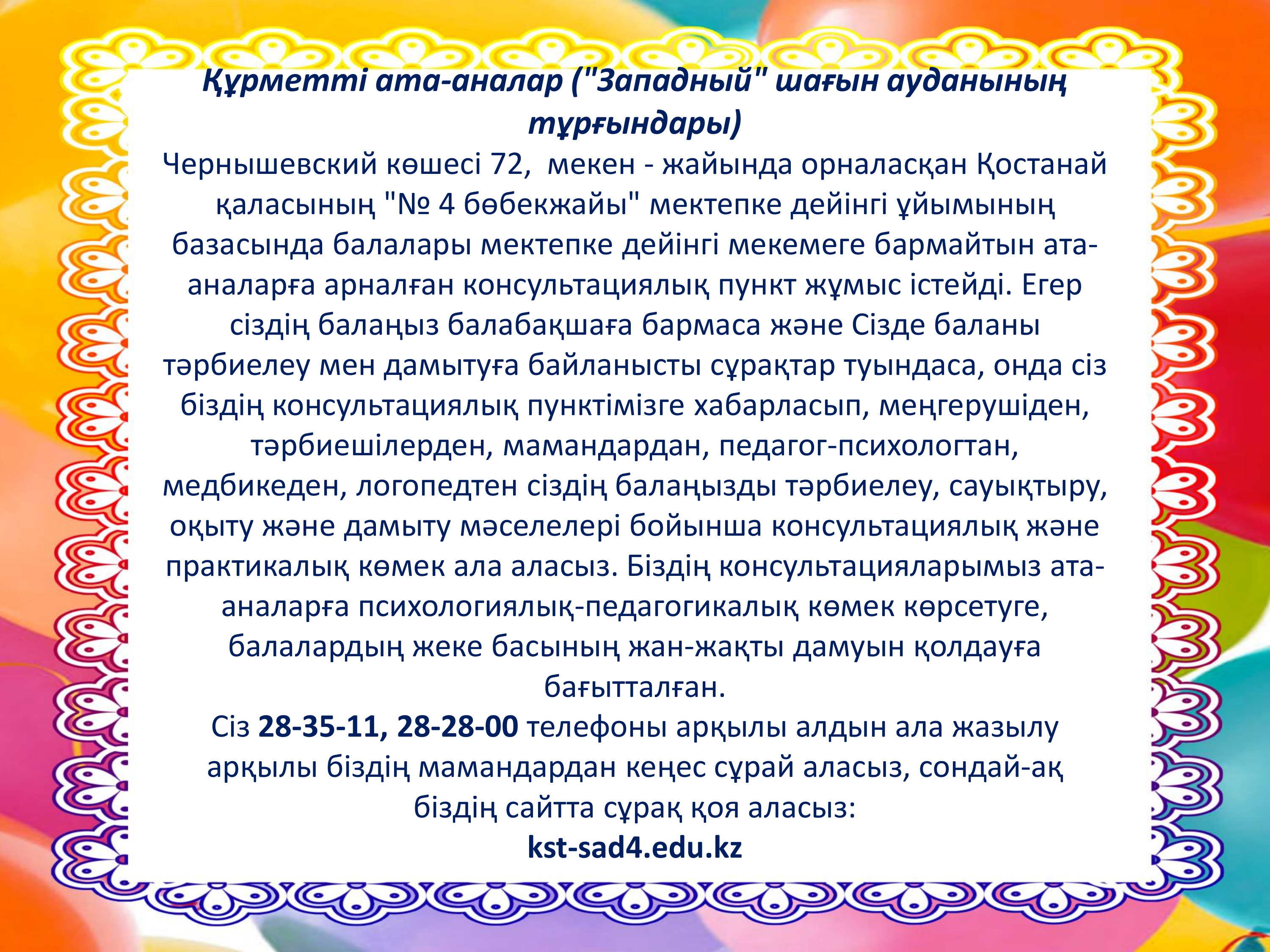 • Ата-аналарға арналған консултативтік пункті