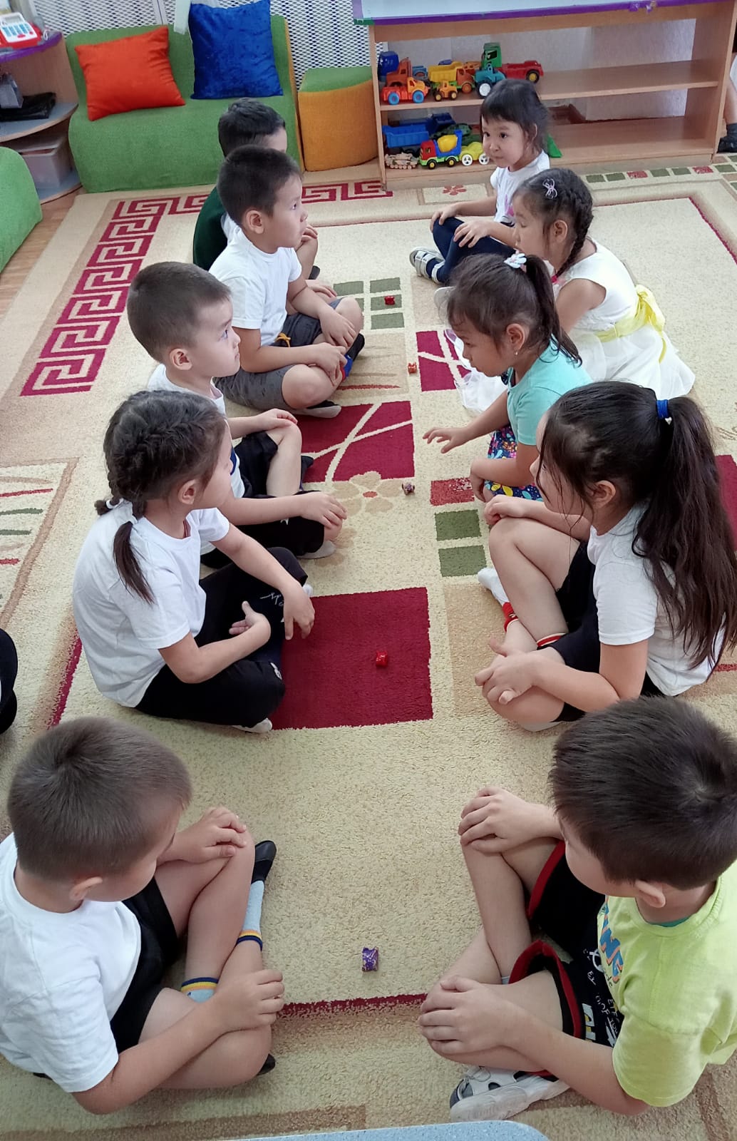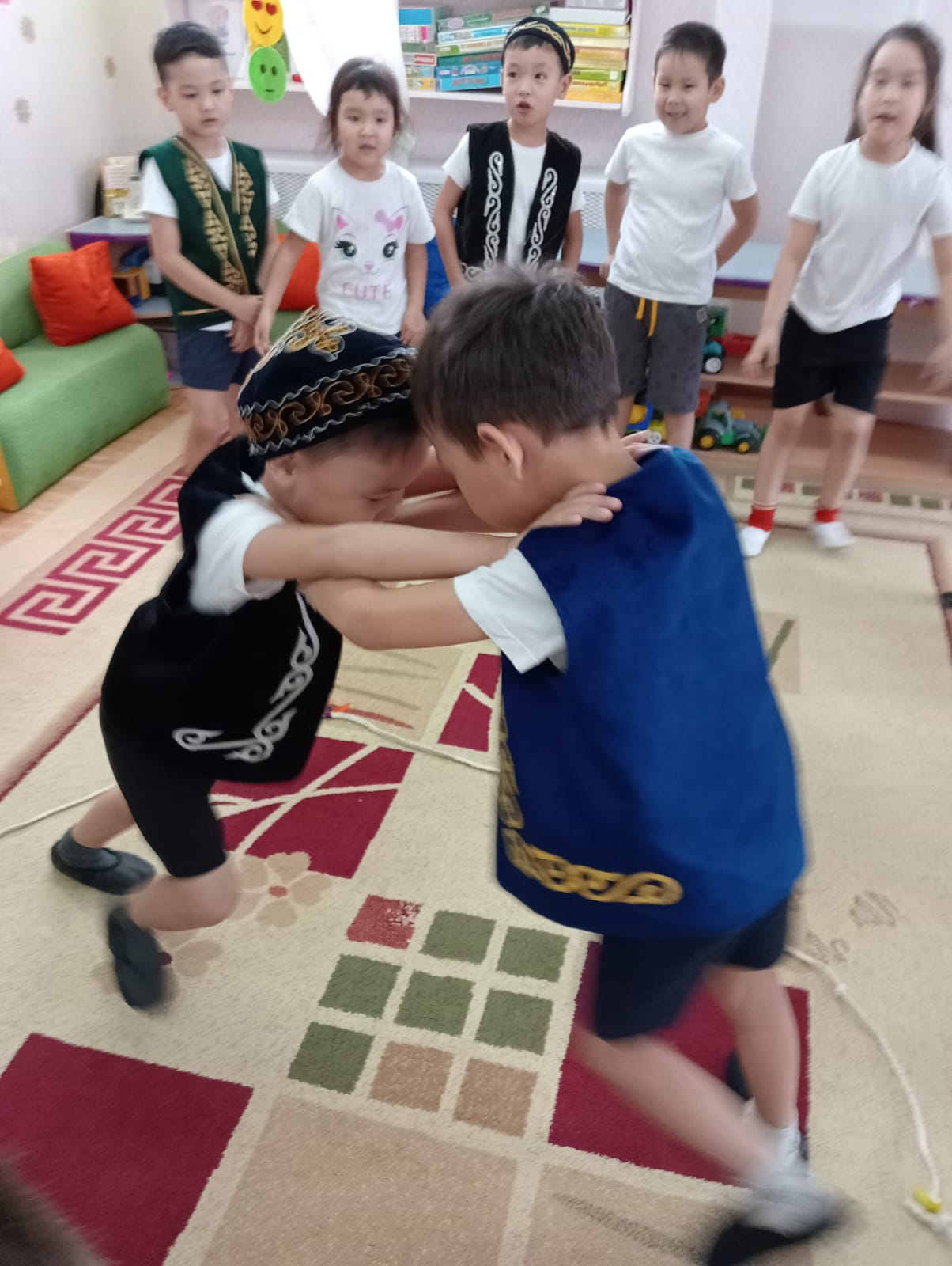 Республика күні қарсаңында алдыңғы "Достық" тобында қазақ ұлттық ойындарына арналған спорттық сағат өткізілді. Мақсаты: Отанға деген сүйіспеншілікті тәрбиелеу, қазақ халқының салт- дәстүрлерін білу және құрметтеу, қазақ халқының құндылықтарына деген құштарлықты қалыптастыру. Балалар "Қасиетті жеті сан", "Орнынды тап" ,"Итеріспек"," Тақия тастамақ "ойындарын қызыға ойнады. Дене шынықтыру нұсқаушысы: Исмагулова Э.Б. Тәрбиеші;Уркумбаева А.Г.