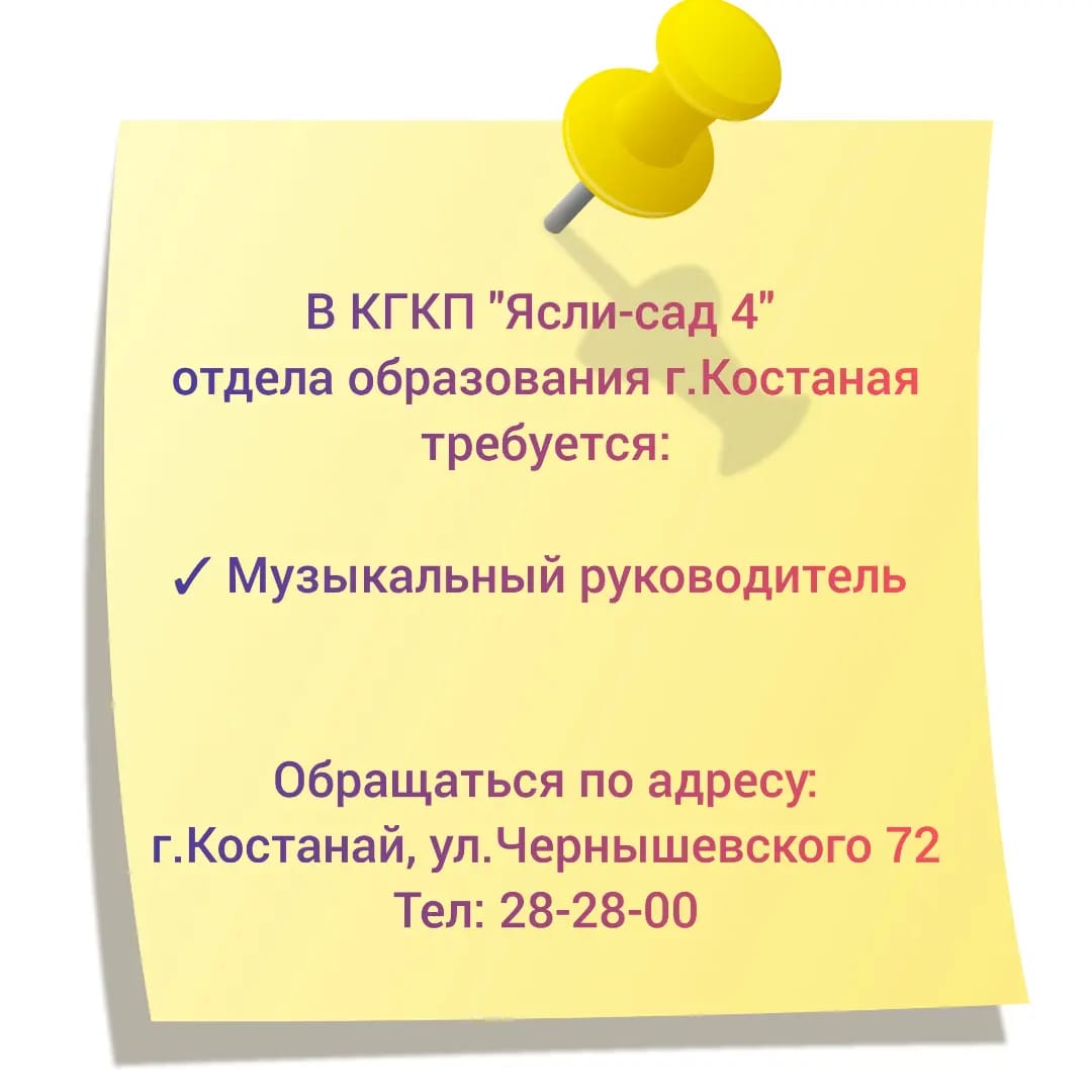 Мектепке дейінгі ұйым музыкалық жетекшесі бос лауазымына орналасуға конкурс туралы хабарландыру