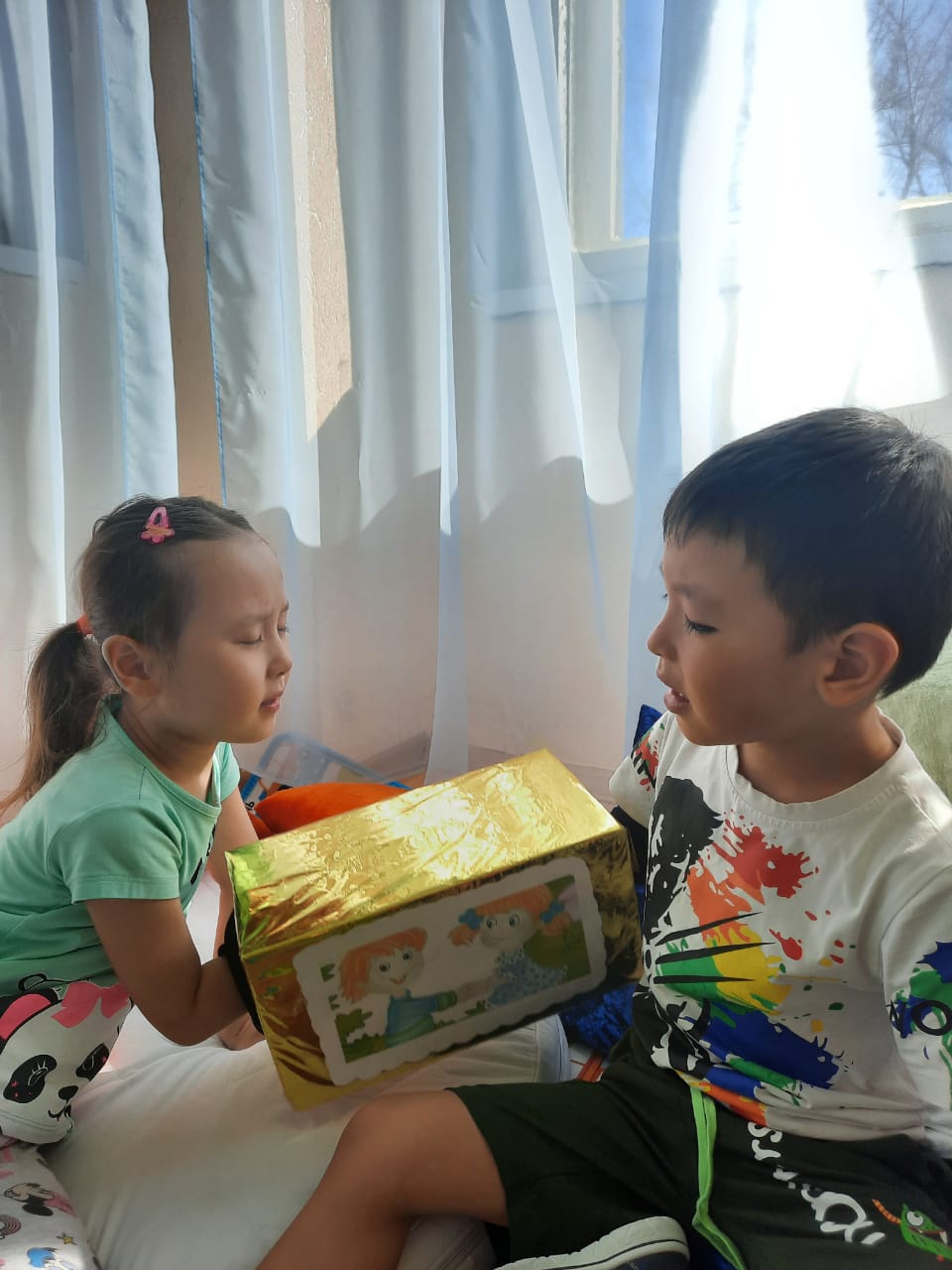 Келесі кезекте "Татуласу қорабы" ойыны.Әрине балалар болған соң,бір-бірлерімен сирек ренжісіп қалады. Сондай сәттерде, ренжіскен балалар, қорапқа қолдарын салып, қолдарын беріп, "Тату болайық" әнін айтып, татуласады.😊 Әлбетте бұл ойын,балаларды бір-бірлерін сыйлап,құрметтеуге, жақын болуға мол әсерін тигізеді.