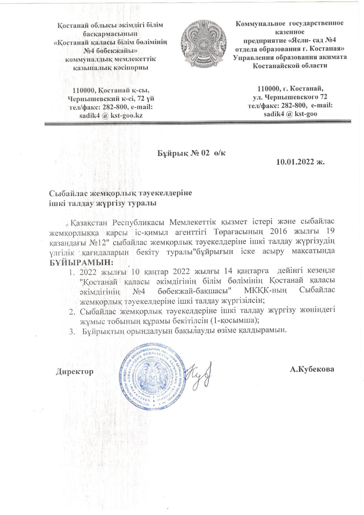 Сыбайлас жемқорлық тәуекелдеріне ішкі талдау жүргізу туралы
