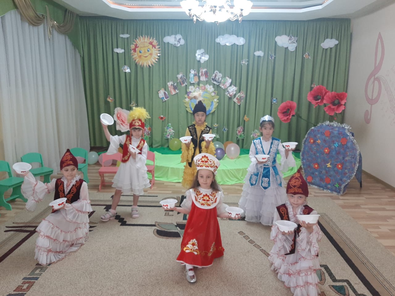 Ко дню единства народов Казахстана в нашем ясли саду 4 прошли тематические ОУД "Мы едины,мы дружны" Дети исполняли песни и стихи,знакомились с обычаями и традициями народов Казахстана. Сюрпризным моментом стал герой Джин,который подарил детям Волшебство Дружбы.