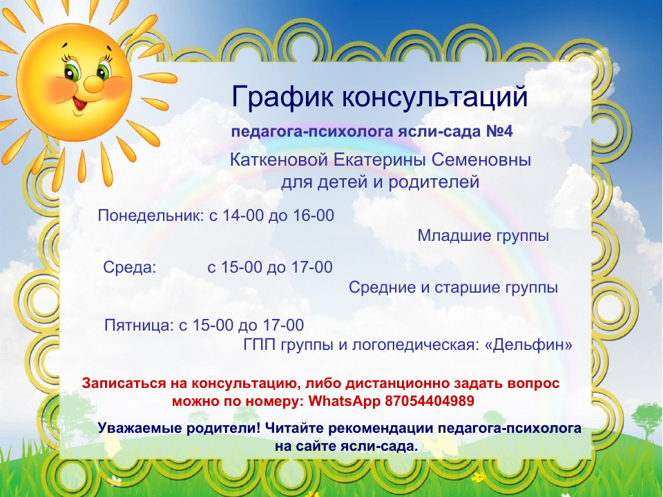 Консультация психолога в младших группах!