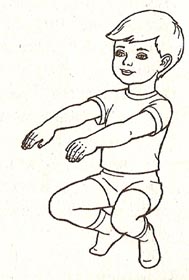 Насос. Ребенок ставит руки на пояс и приседает, вдыхая воздух, а выпрямляется, выдыхая. Приседания следует делать сначала неполные, а затем до самого пола, увеличивая тем самым время вдоха и выдоха.