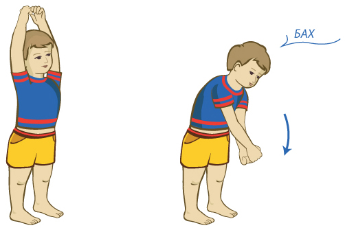 Дровосек. Ребенок стоит прямо, ноги на ширине плеч со сложенными вместе руками. Резко, как будто работая топором, малыш наклоняется вниз и «рубит»пространство между ногами, произнося«бах».