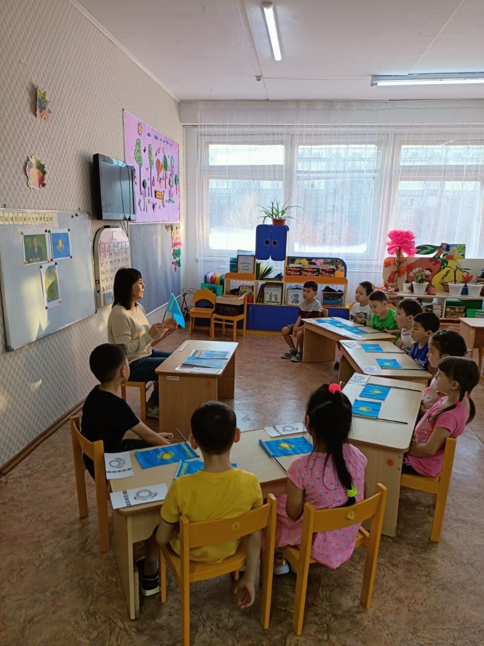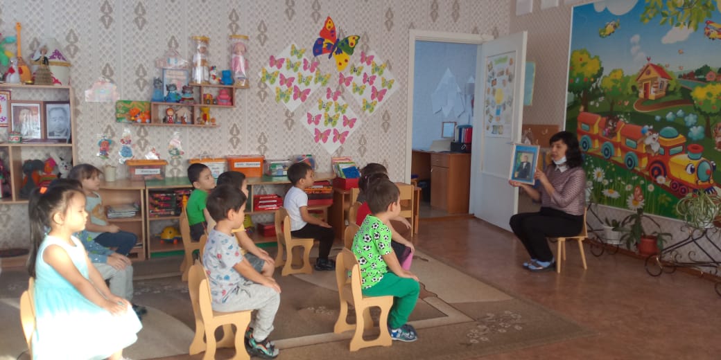 Тұңғыш президент күніне байланысты Көбелек тобында Менің тұңғыш президент кім? атты әңгімелесу болды. Балалар осы тақырыпқа байланысты өз ойларын сұрақ-жауап арқылы жеткізді, Қазақстанның туы, ән ұраны, ел таңбасы бір сөзбен рәміздер аталатын айтты, Қазақстанның ән ұранын балалар жақсы орындап берді.