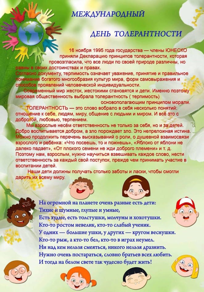 Вот и закончилась неделя Толерантности в нашей группе "Ромашка", итогом её стало развлечение для детей "Цветок дружбы", дети выучили стихи о дружбе, пели песни, играли в игры. В течении недели были проведены тематические беседы, обсуждение поступков героев сказок и т.д. Да неделя закончилась, но наша работа по воспитанию у детей нравственных ценностей, таких как дружба, любовь, взаимовыручка, терпение, помощь, чуткость, сострадание и другие не закончилась. Воспитание толерантности проходит красной нитью во всех воспитательно-обрпзовательных процессах.