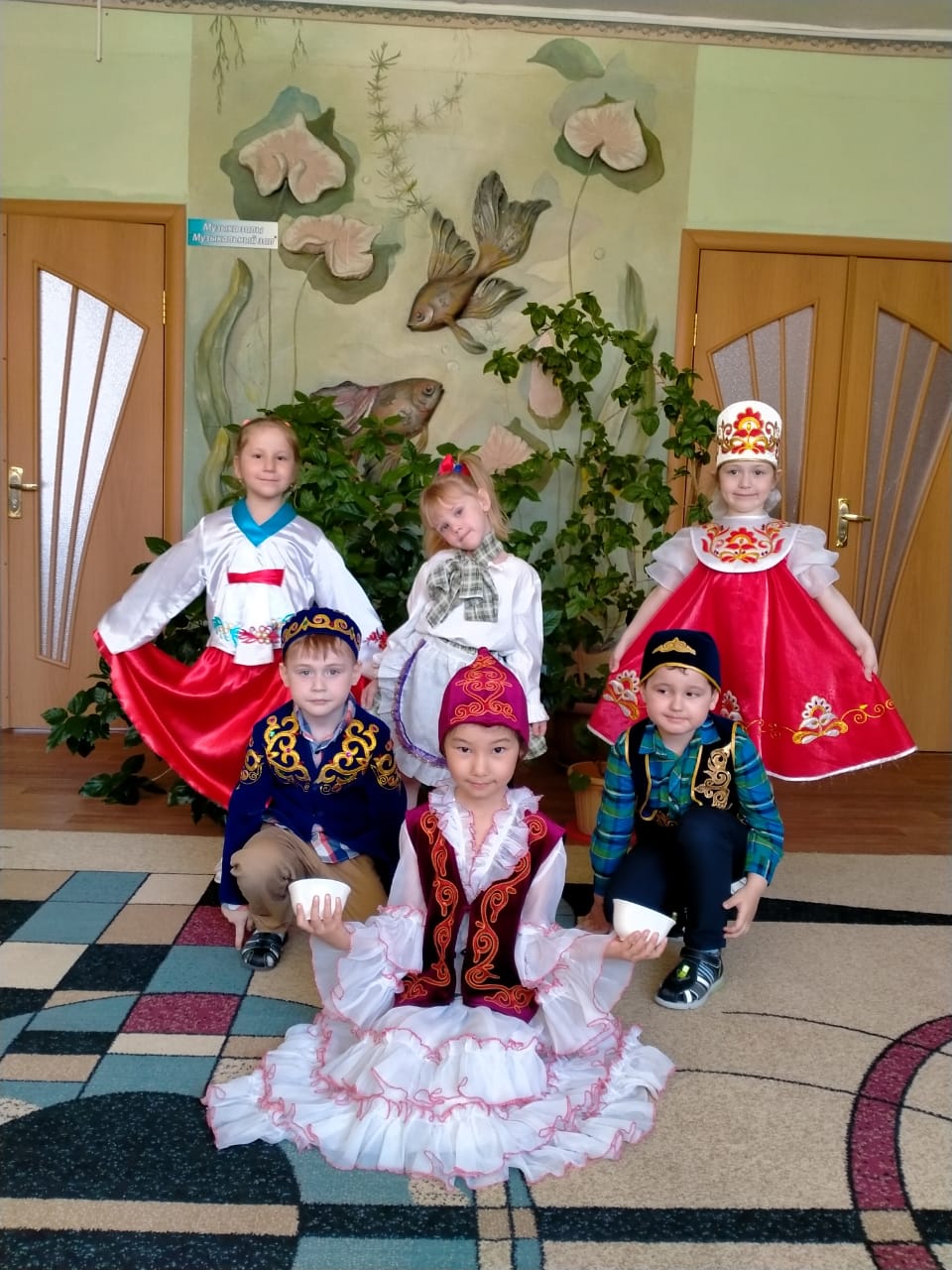 В первых числах мая Казахстан отмечает один из самых добрых и светлых праздников - День единства народов Казахстана. Это праздник дружбы, понимания и согласия, которые так необходимы для мирной жизни в нашей стране, где проживает более 100 наций и народностей. Яркий весенний праздник прошел в нашей группе. Все дети были в костюмах разных национальностей, читали стихи на 2 языках, играли в национальные игры, пели песни. Очень оживил праздник Джин. Это был праздник улыбок, дружбы, весны и хорошего настроения.