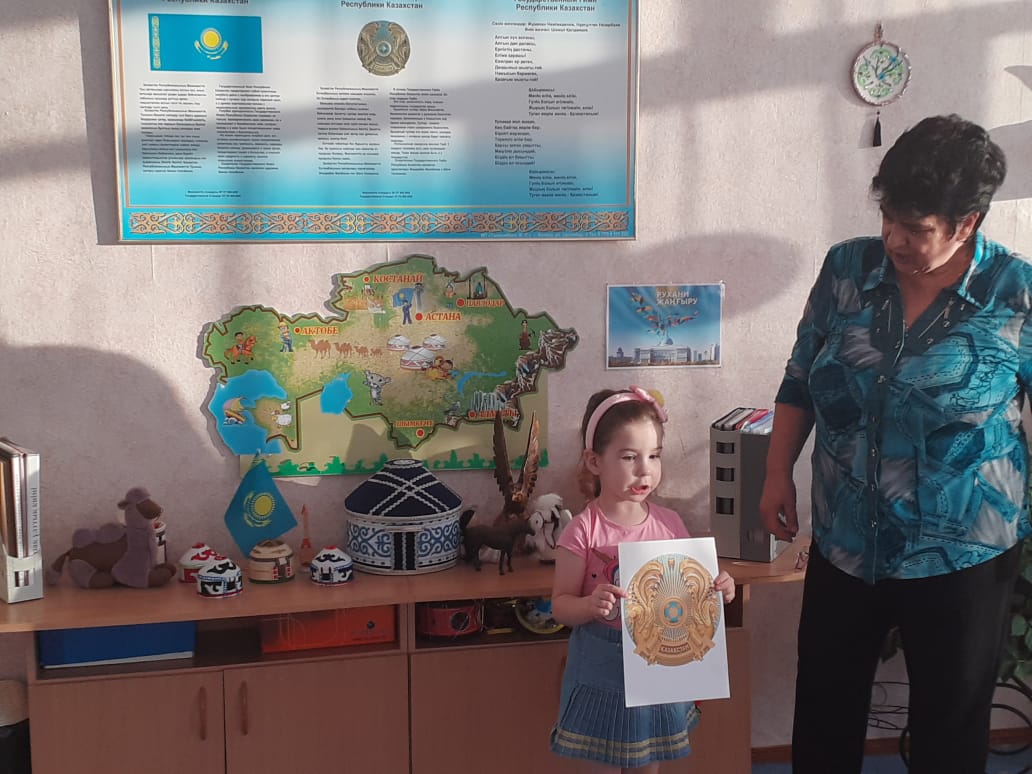 Цель: привитие чувства патриотизма и любви к своей Родине. Познакомить с историей государственных символов Казахстана. Привитие уважения к государственным символам, гордости к историческому прошлому и традициям народов нашей страны.