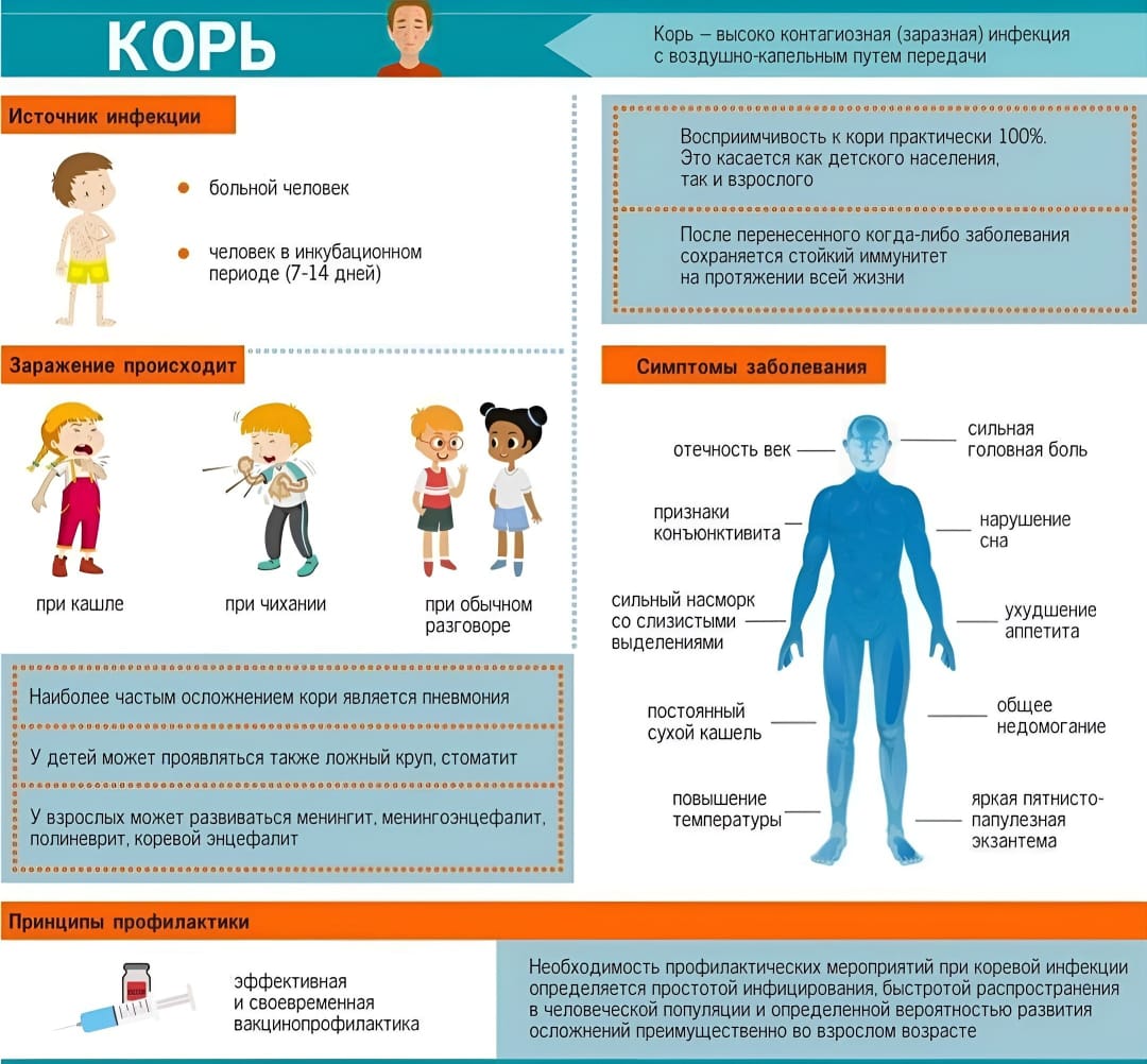 Корь - высококонтагиозная (заразная) инфекция с воздушно-капельным путем передачи